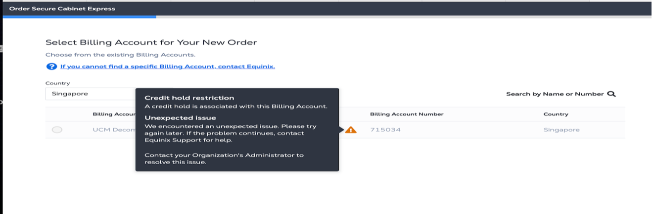 A credit hold is a temporary restriction placed on your Equinix account when payment obligations are not met. During a credit hold, you cannot make new purchases or access certain services. This measure ensures financial compliance and helps prevent service disruptions.