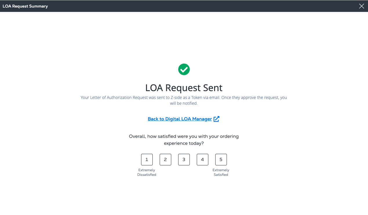 Your Z-side contact receives email that includes your request to connect as an A-side partner, and a link to the Digital LOA Manager to create the new LOA.