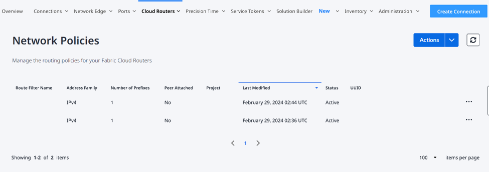 - In the Fabric portal, select Network Policy Inventory from the Cloud Routers menu.