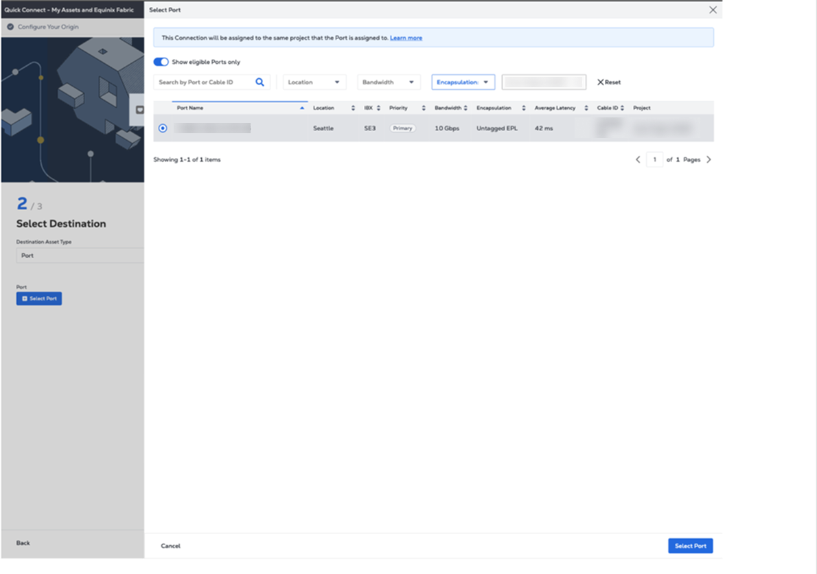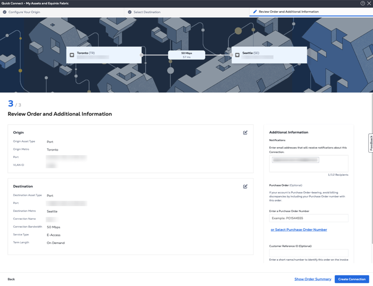 You can use Fabric's API to automate or integrate this procedure. For more information, see Equinix Fabric API - Connect as E-access.