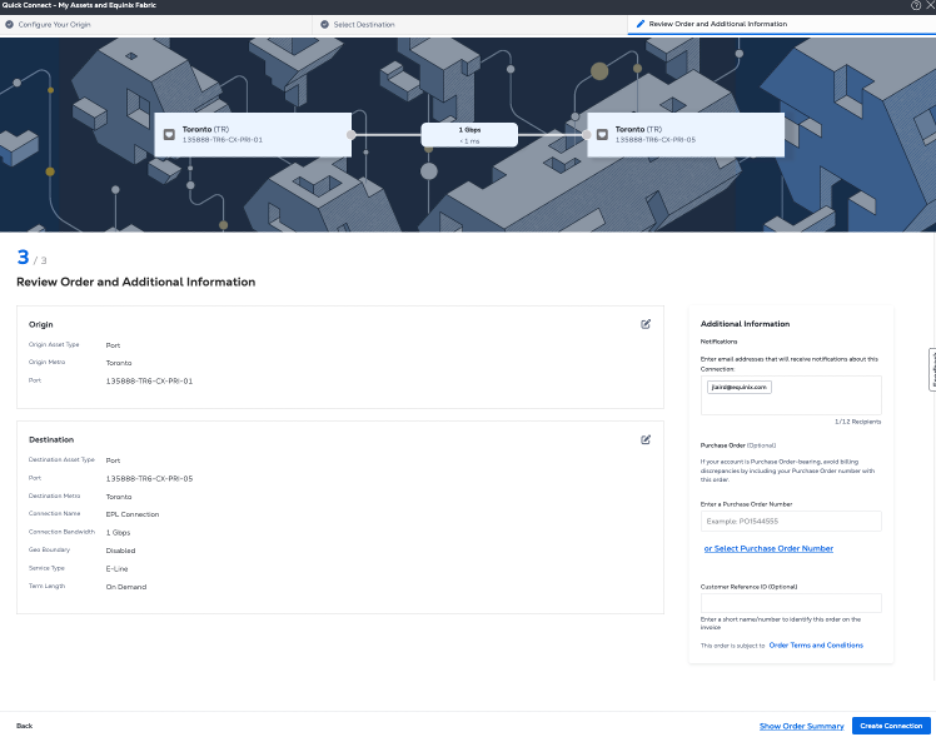 You can provision the connection once your EPL ports are visible in your Ports Inventory.