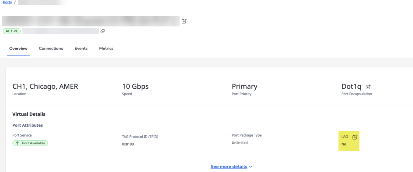 To upgrade your existing Non-LAG port to a LAG port, you must order new Fabric port and migrate your existing connections. See Upgrade from a Non-LAG to a LAG Port for more information.