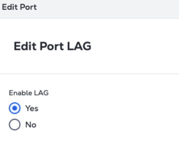 You can update the Link Aggregation Group (LAG) setting of an existing Fabric Port from Yes to No or No to Yes, depending on your connectivity requirements.