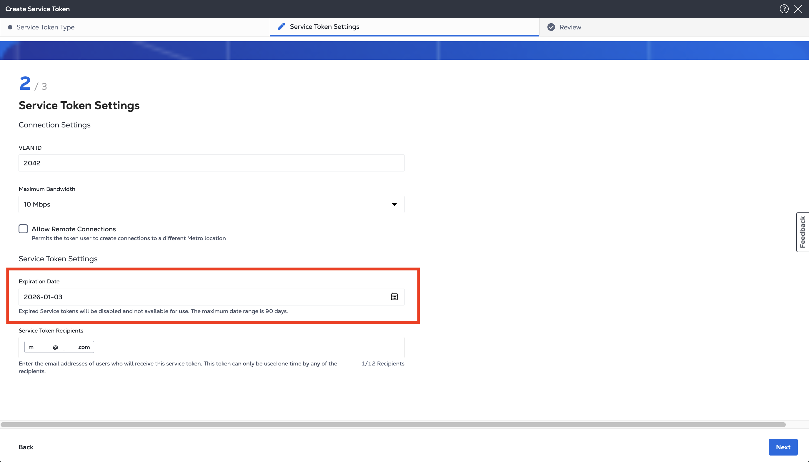 Enter or choose an expiration date for the service token. The maximum expiration time is 90 days.