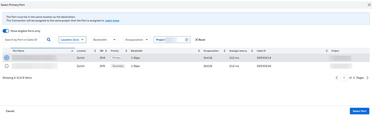 - A Fabric port, an A-side service token, or a Network Edge virtual device.