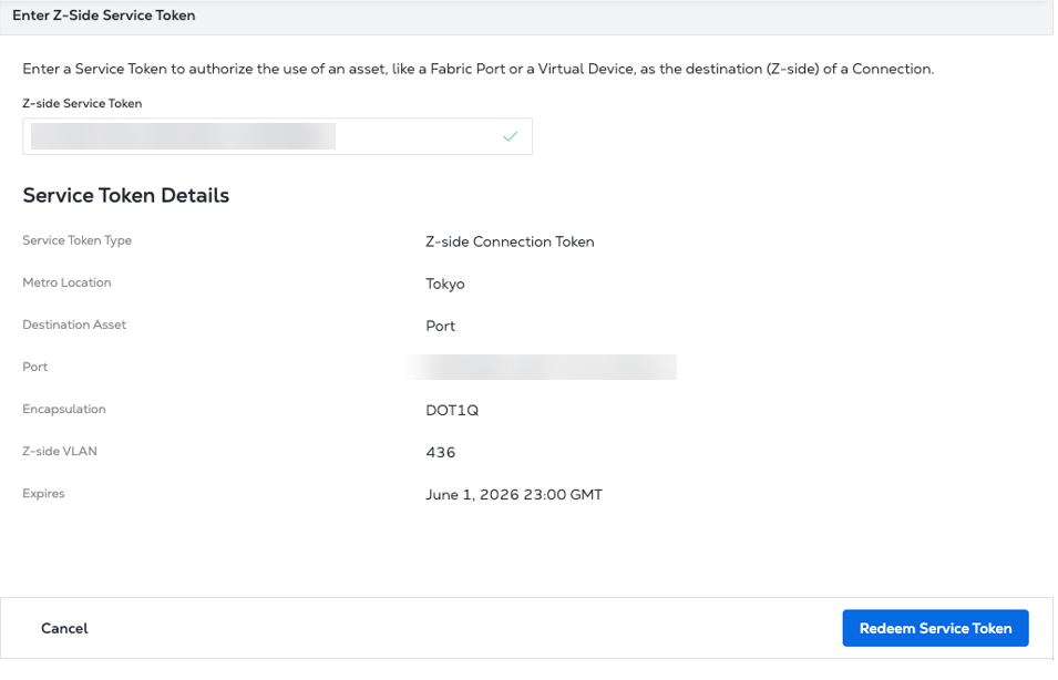 A Z-side service token can be used to create a virtual connection to a service provider or another Equinix Fabric customer. In order to create the connection, you must have a valid service token shared with you by a reseller, carrier, service provider, or other Equinix Fabric customer.