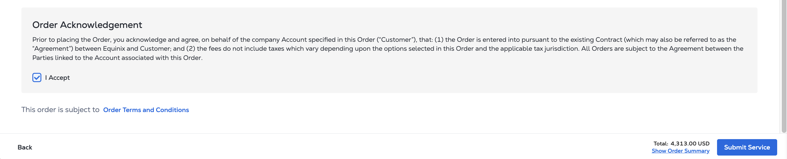 This page covers ordering Internet Access over a Dedicated Port. Information on ordering service for a Fabric Port or Network Edge device is available on Ordering Internet Access.