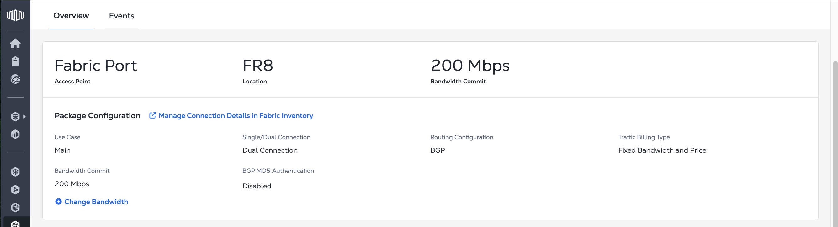 The Internet Access Inventory allows you to view your Internet Access services that are connected to Fabric Ports and Network Edge virtual devices. It is the entry point for managing and monitoring your Internet Access services.