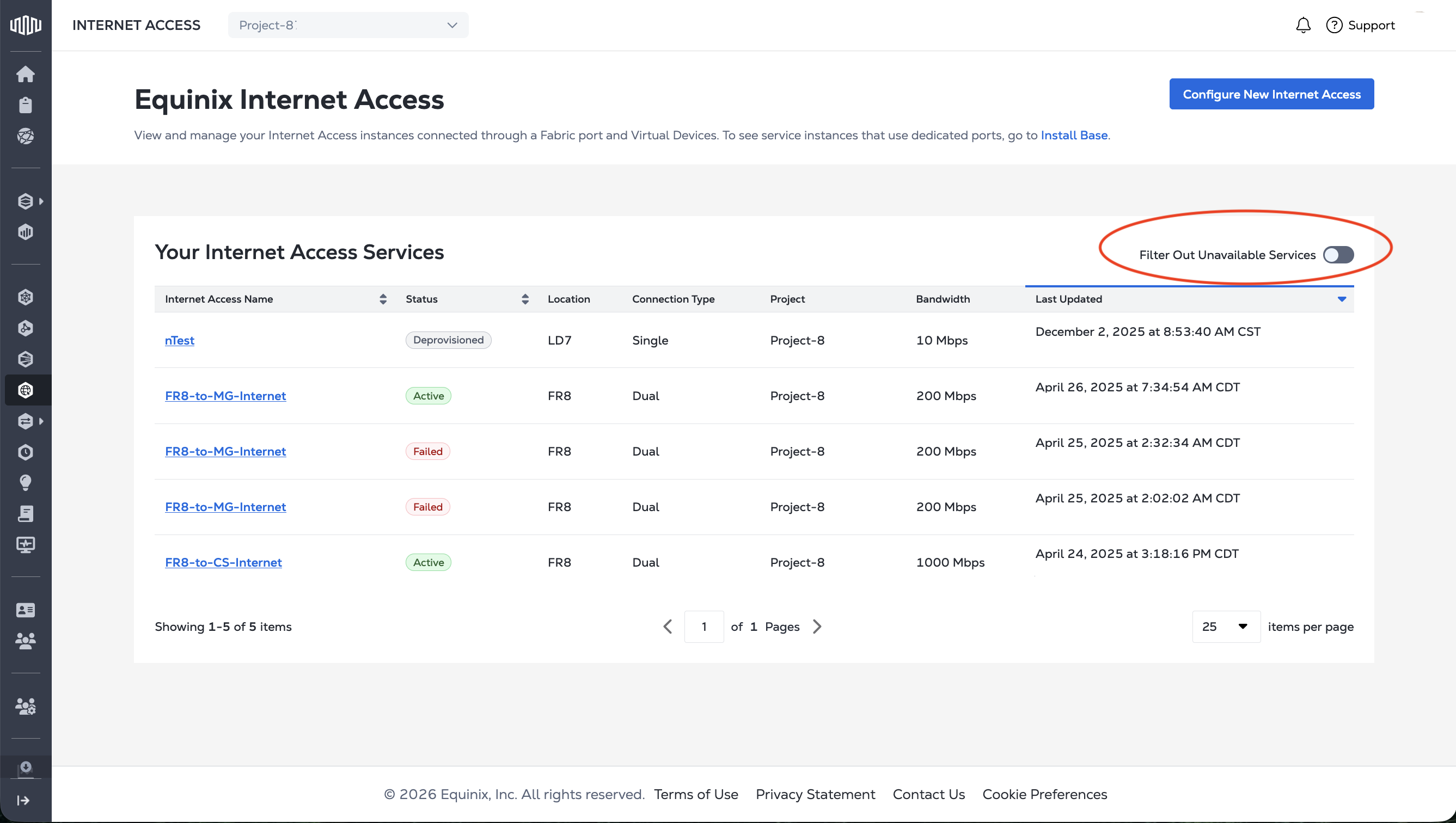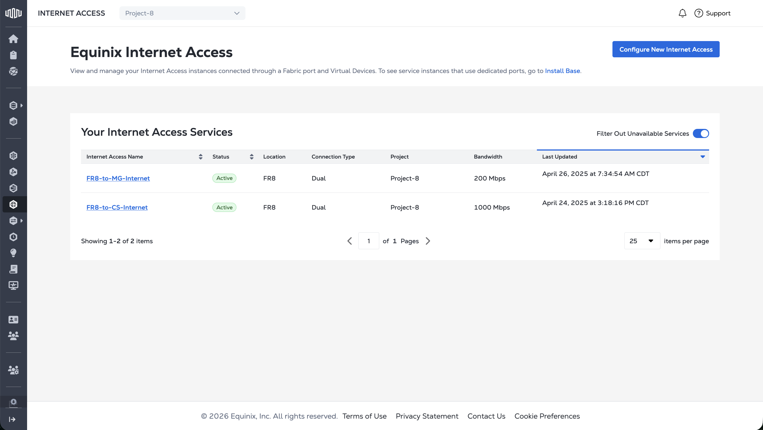 As part of the Platform Updates rolling out to all customers over the course of 2026, Internet Access services over a Dedicated Port will be visible and manageable in the Internet Access Inventory.