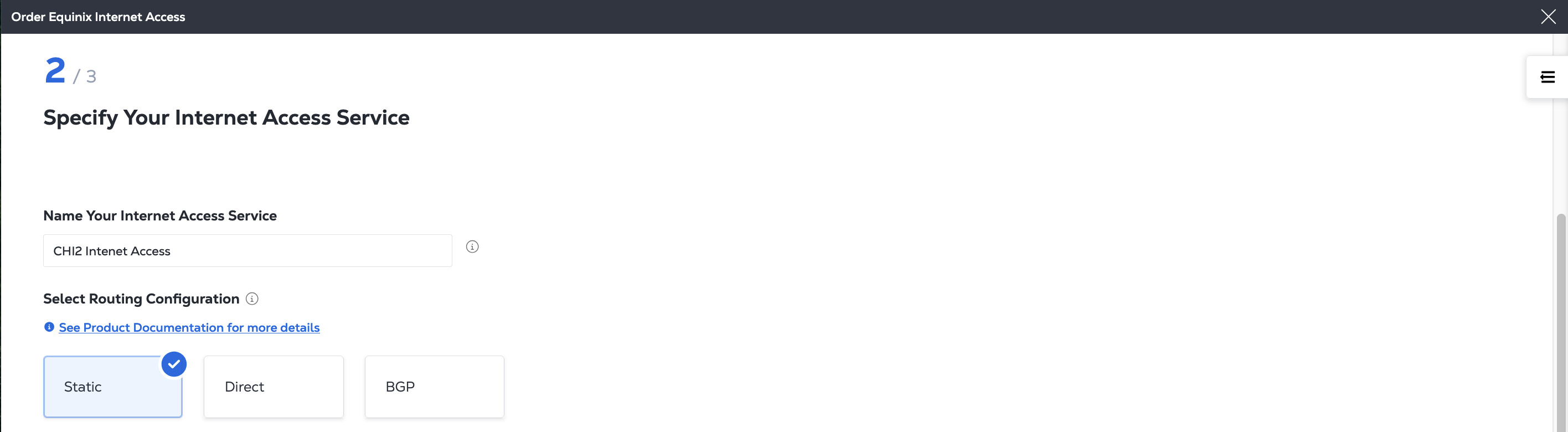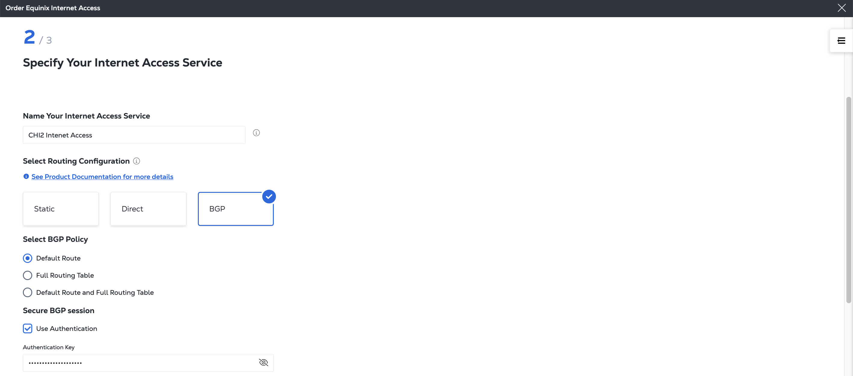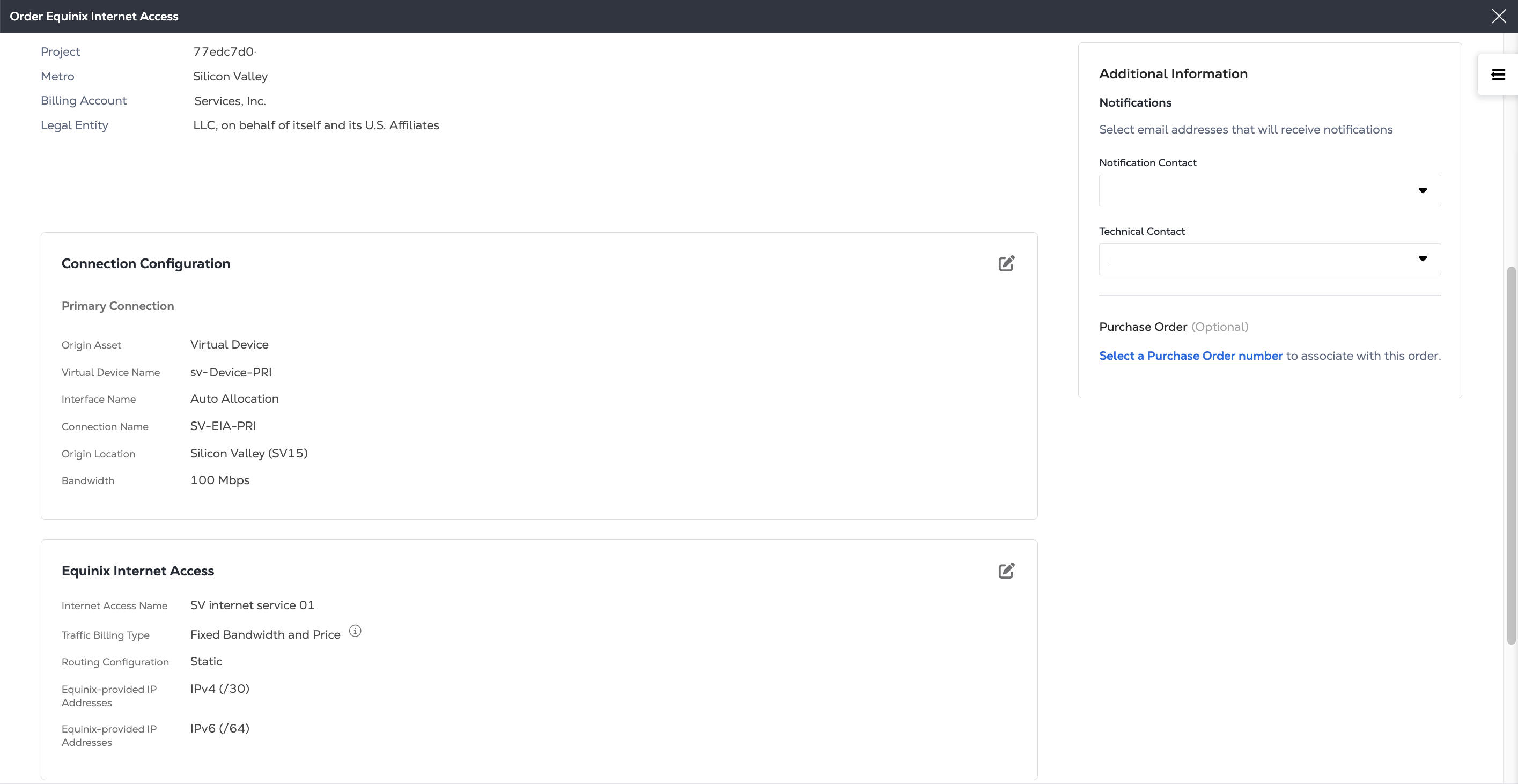 Review the information in the Connection Configuration and Equinix Internet Access sections.