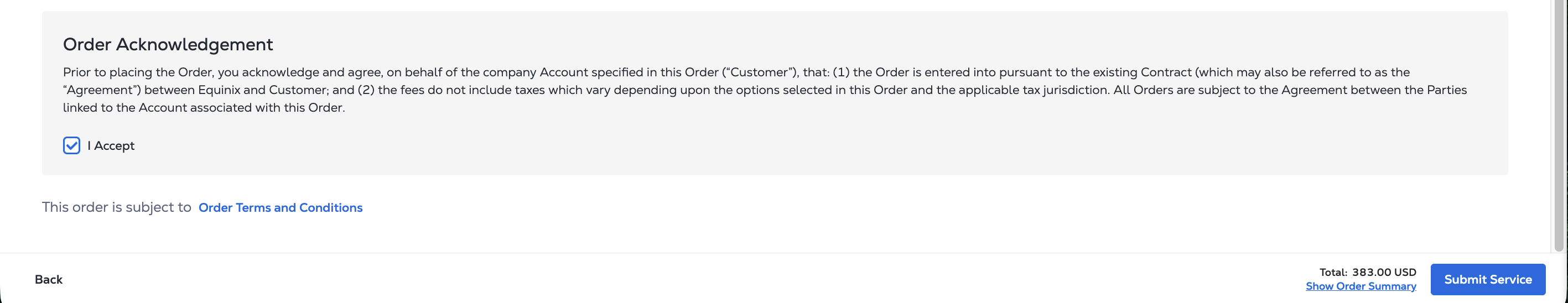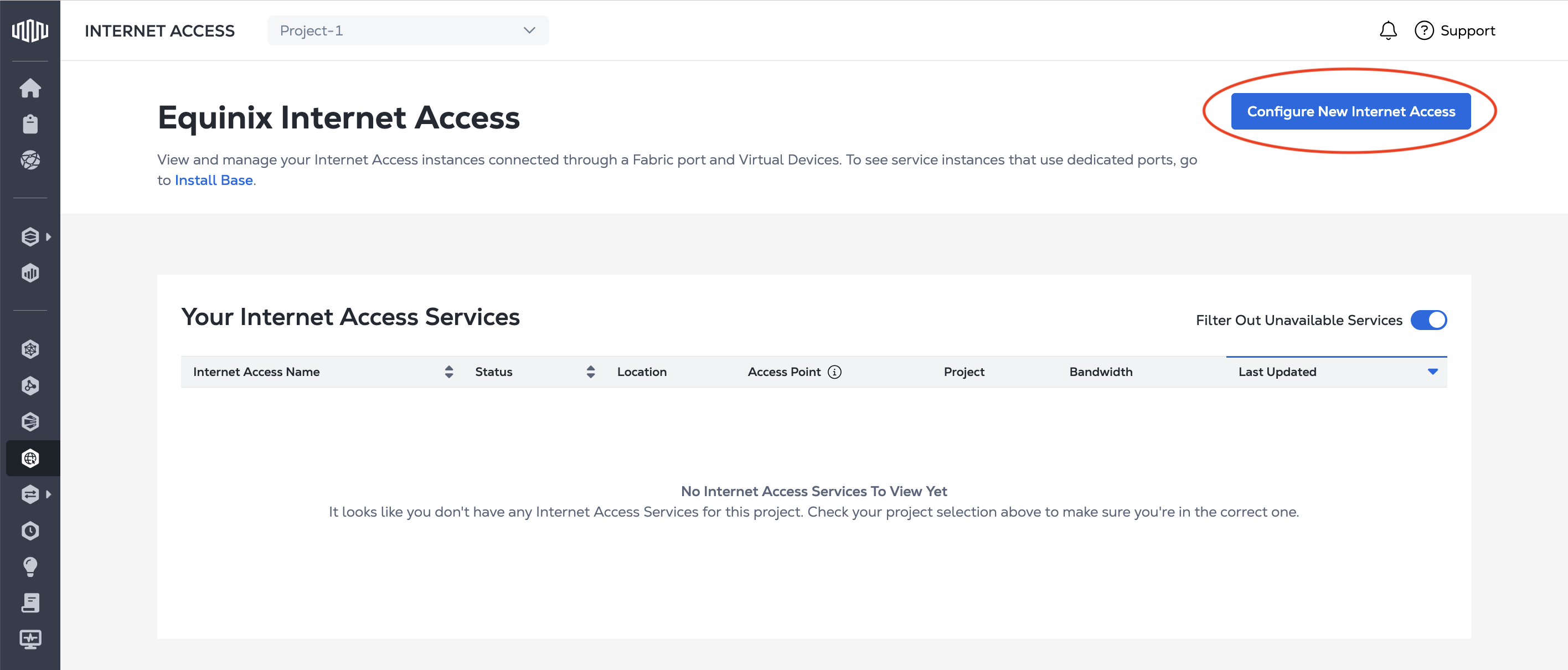 This page covers ordering Internet Access over a Fabric Port or Network Edge device. Information on ordering service for a Dedicated Port is available on Ordering Internet Access for a Dedicated Port.
