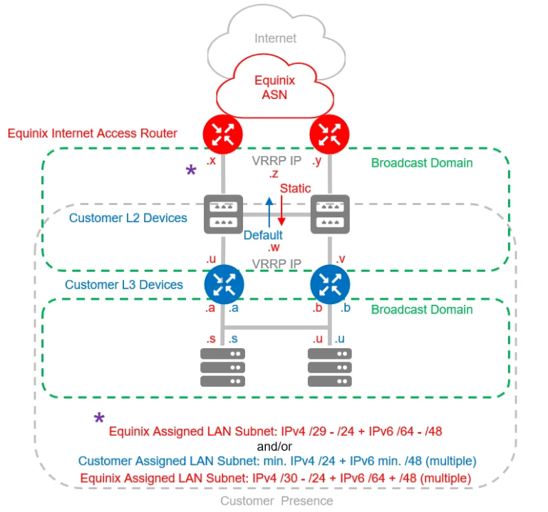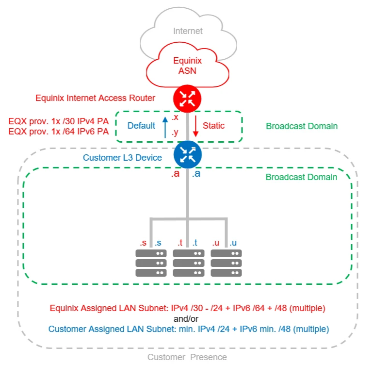 - Equinix Assigned IPs are provided by Equinix. You must purchase additional LAN IP subnets from Equinix for this option.