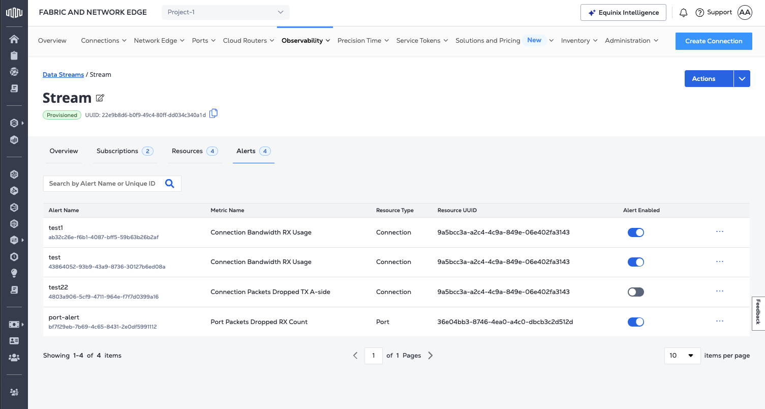 Prerequisite: In order to add an alert rule, you should have a stream created with Port and/or Connection resources attached and metric enabled