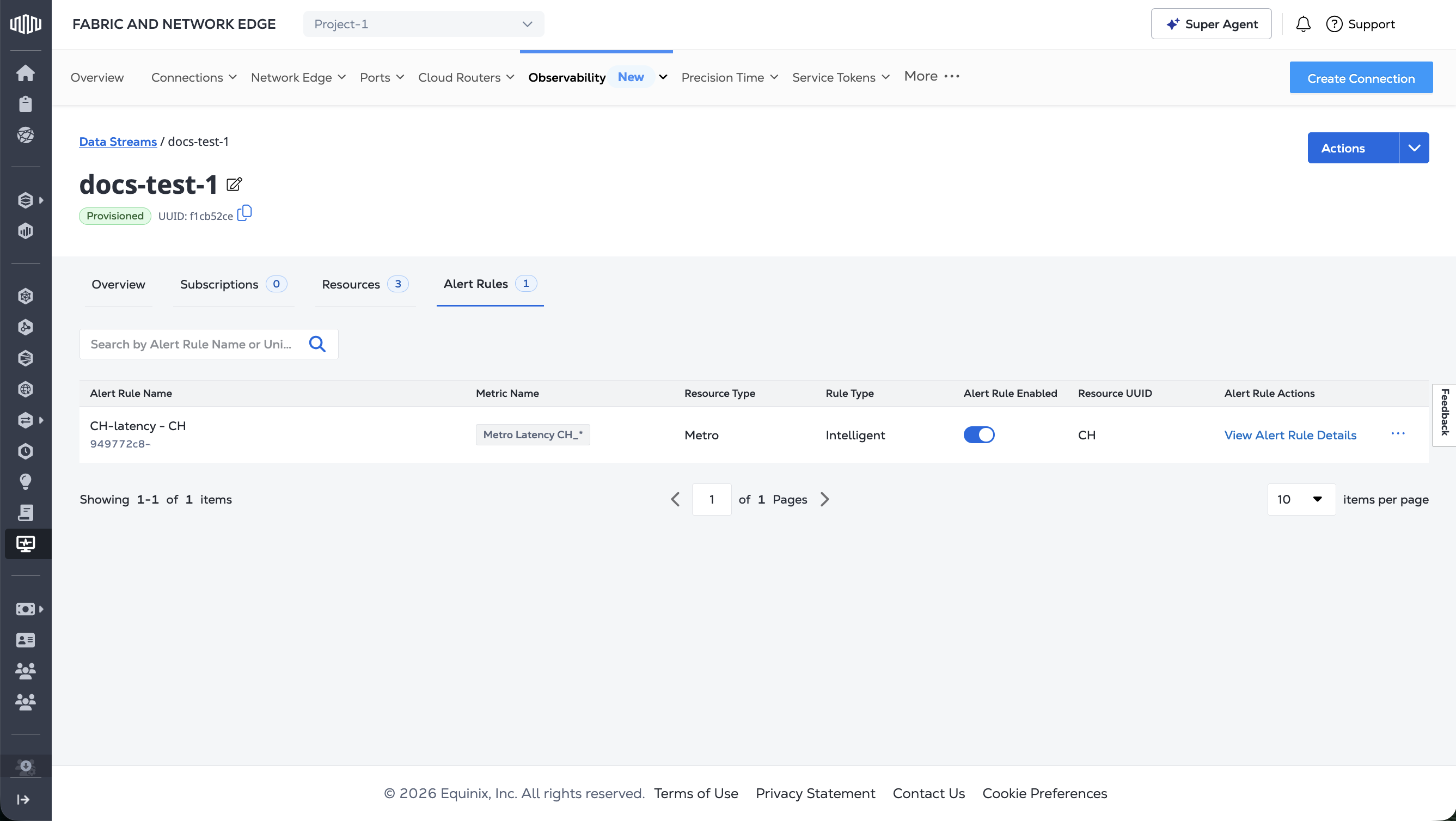 Prerequisite: In order to add an alert rule, you should have a stream created with Port and/or Connection resources attached and metric enabled