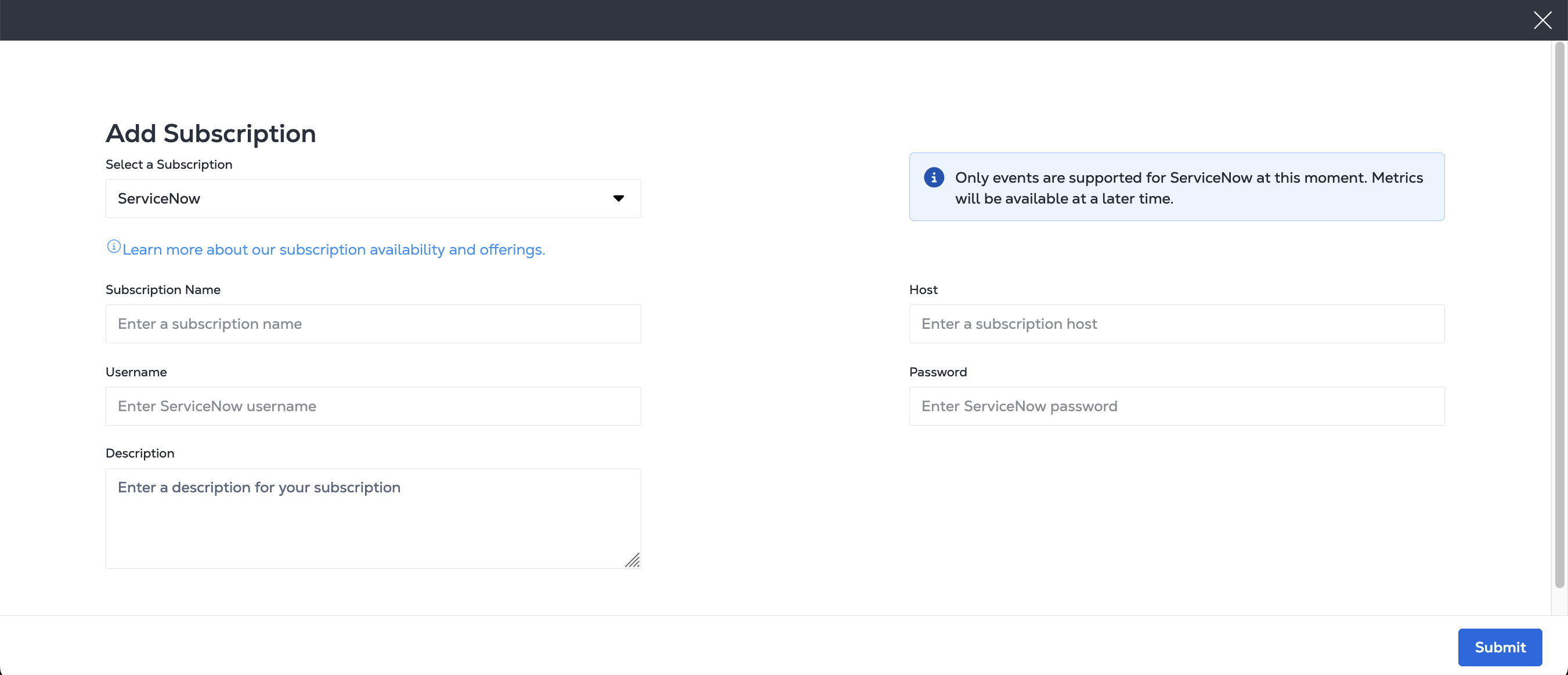 On the Add Subscription page, enter your Microsoft Teams information, including: