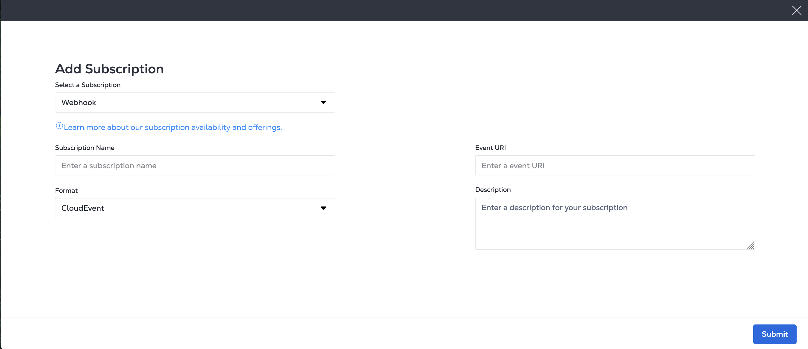 curl -X POST 'https://api.equinix.com/fabric/v4/streams/<streamId>/subscriptions' \