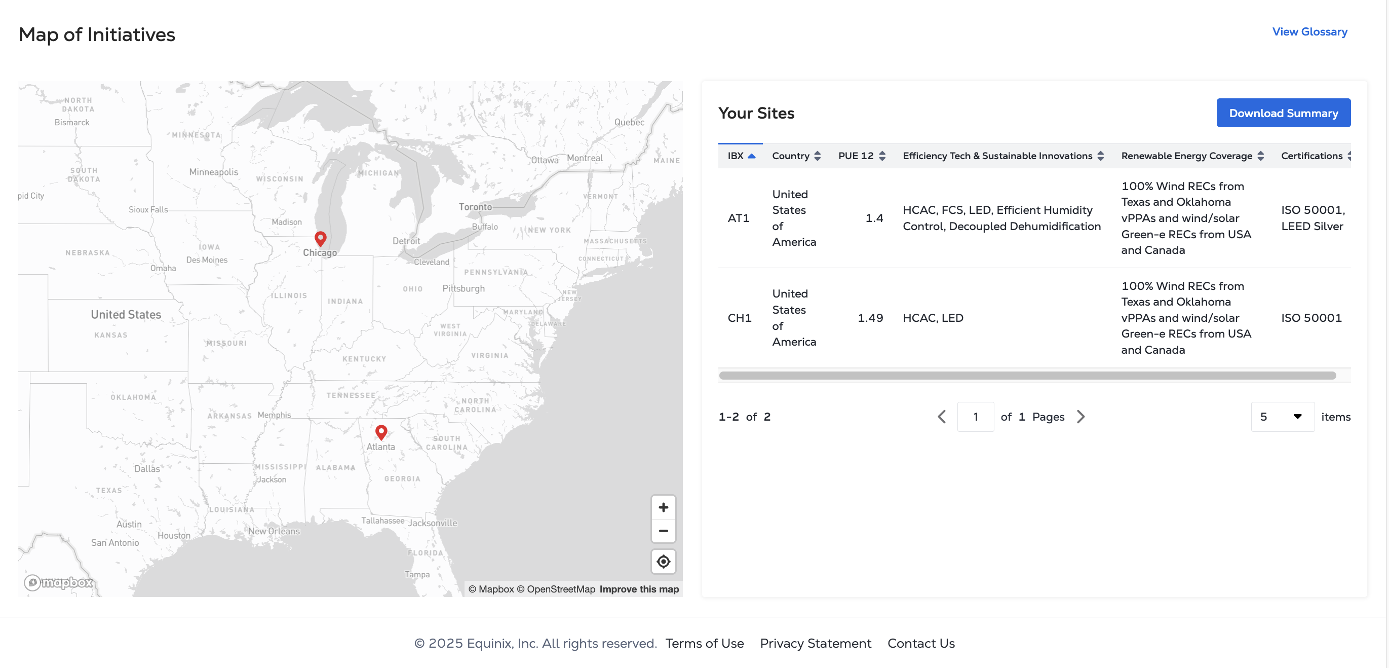 - A downloadable table of site-level sustainability initiatives and Power Usage Effectiveness (PUE).