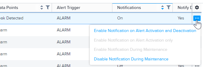 For screens with multiple actions available (such as System Alerts Settings), click the ellipsis icon and select one of the available actions.