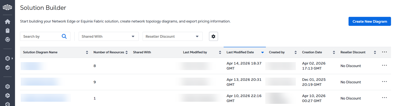 Use the Search field to look for specific solution design by diagram name or creator name.